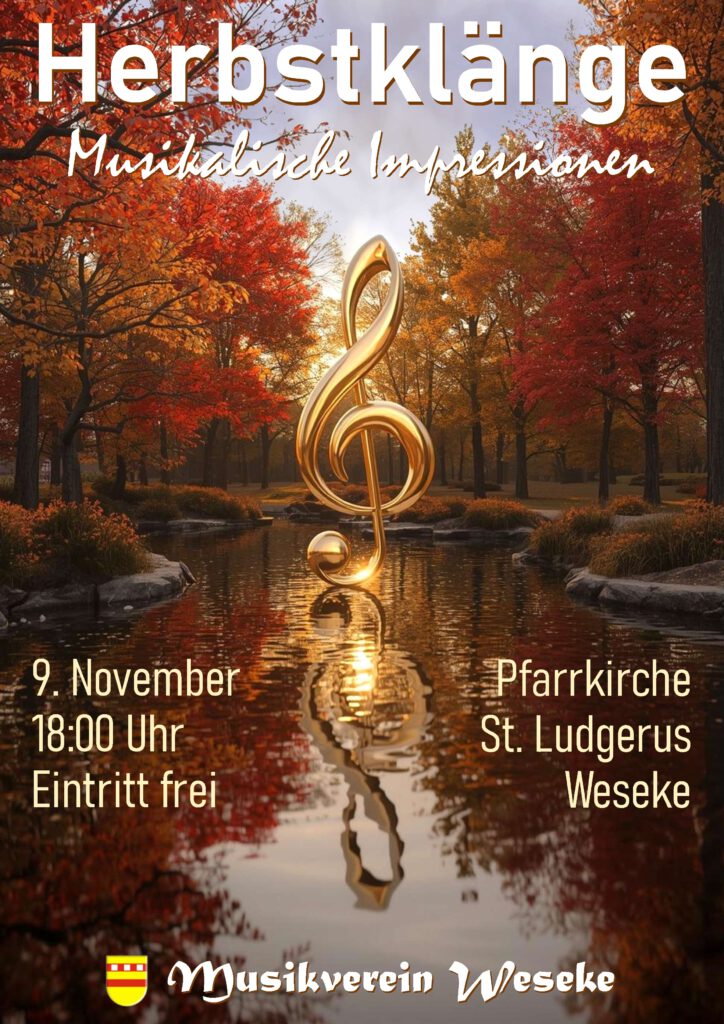 Der Musikverein Weseke lädt am Sonntag, dem 9. November 2025, um 18:00 Uhr herzlich zu seinem ersten Herbstkonzert in die Pfarrkirche St. Ludgerus in Weseke ein. Unter dem Motto „Herbstklänge – Musikalische Impressionen“ dürfen sich die Zuhörer auf ein abwechslungsreiches Programm freuen, das klassische Werke, gefühlvolle Balladen und eindrucksvolle Bearbeitungen für symphonisches Blasorchester vereint.